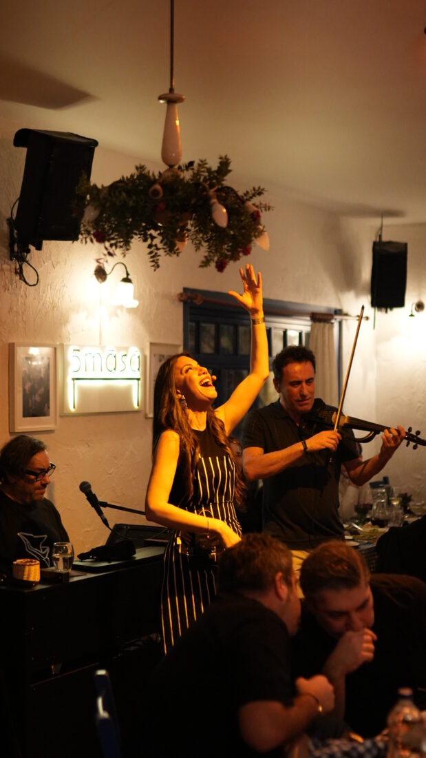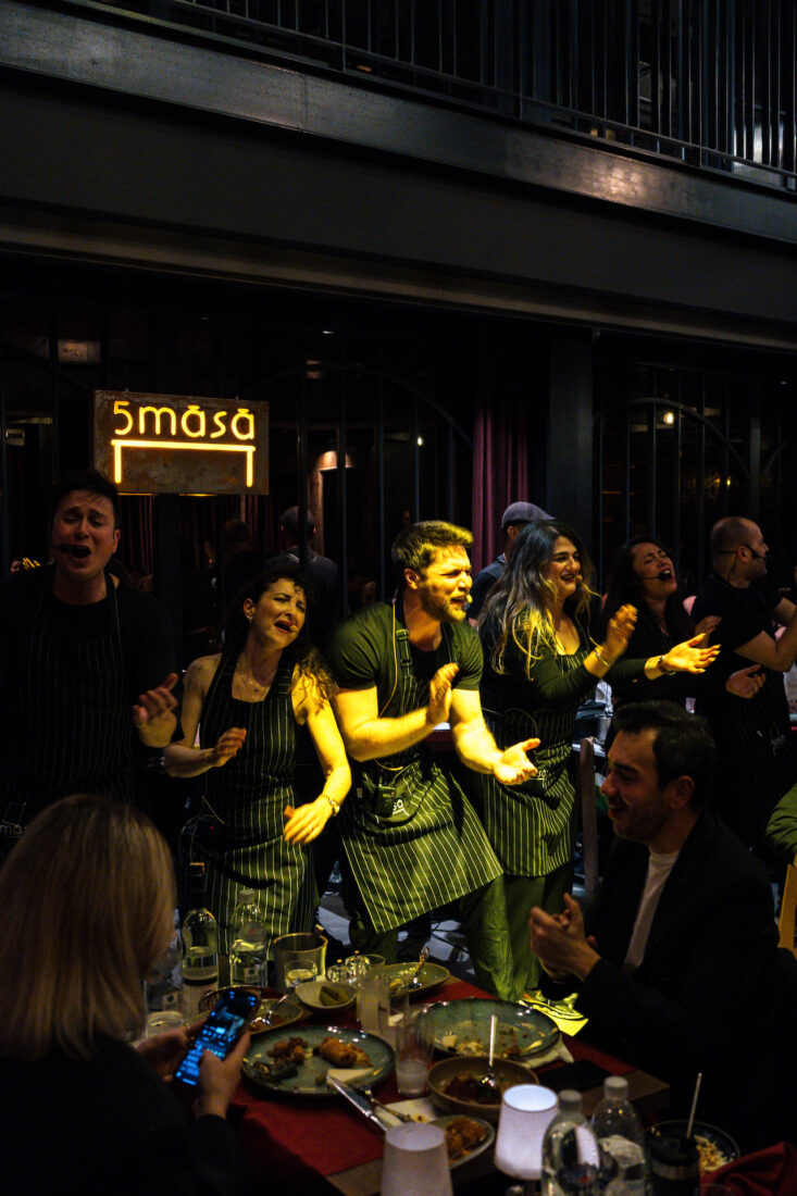 5masa’yı klasik bir restoran deneyiminden ayıran en önemli unsur; mutfak, servis ve müziğin tek bir akış içinde buluşması. Mekânda çalışan herkes müzik eğitimi almış; gece ilerledikçe ritim sofraya karışıyor. Kaşık sesleri alkışa, masa kahkahaya, akşam bir performansa dönüşüyor. Planlı bir şovdan çok, doğal bir akış… Samimi, içten ve artan bir enerji.