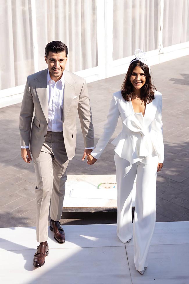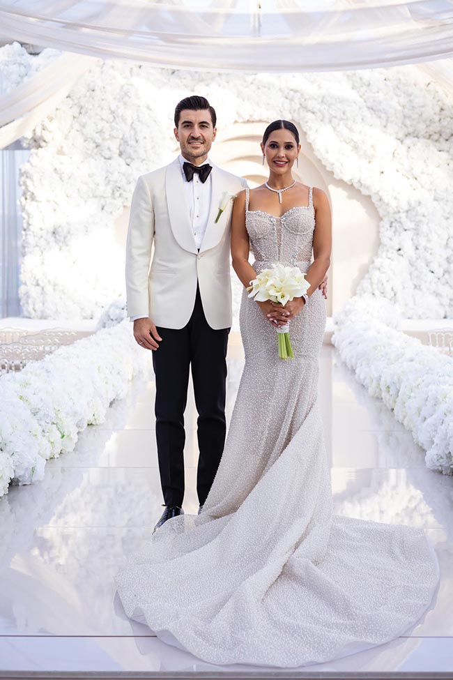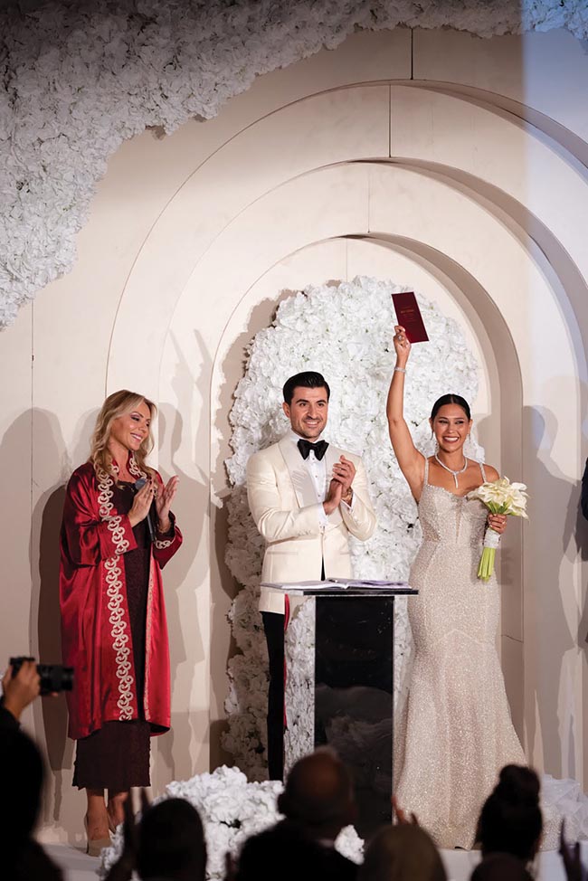 Sonbaharın en güzel günlerinden birinde, Boğaz’ın büyüleyici manzarası eşliğinde iki kalp birleşti: Ceyda Bekmezci ve Muhammet Kaya… Mekân, ihtişamıyla büyüleyen Mandarin Oriental Bosphorus; atmosfer ise aşkın ve zarafetin en saf hâliydi. Sabahın ilk saatlerinden itibaren herkesin dilindeydi: Ceyda’nın evden çıkış kombini Vakko, sade ama zarif… Asıl gösteri ise nikâhta başladı. Berta imzalı göz alıcı gelinlik, Begüm Salihoğlu tasarımı duvak ve kusursuz saç-makyaj kombinasyonu herkesin nefesini kesti. Saçlar Adress Hair Style, makyaj ise tabii ki Ayşe Kırım’dan.