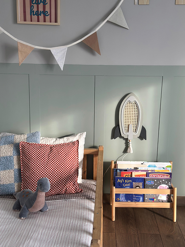 Ürün tasarlarken önceliğimiz her zaman çocuk güvenliği ve kullanım konforu oluyor. Doğrudan bebek ve çocuk odalarında kullanılan ürünler olduğu için, malzeme seçiminde son derece hassas davranıyoruz. Doğal ahşap yüzeyler, su bazlı ve çocuk sağlığına uygun boyalar kullanıyor; aynı zamanda düşük voltajlı LED sistemlerle güvenli bir kullanım sağlıyoruz. Bunun yanı sıra, tasarımlarımızın yalnızca işlevsel değil, uzun yıllar kullanılabilmesine ve zamansız bir estetik sunmasına da önem veriyoruz. Sürdürülebilirliği ise; hızlı tüketilen ürünler yerine, uzun ömürlü ve kalıcı tasarımlar üretmek olarak tanımlıyoruz.
