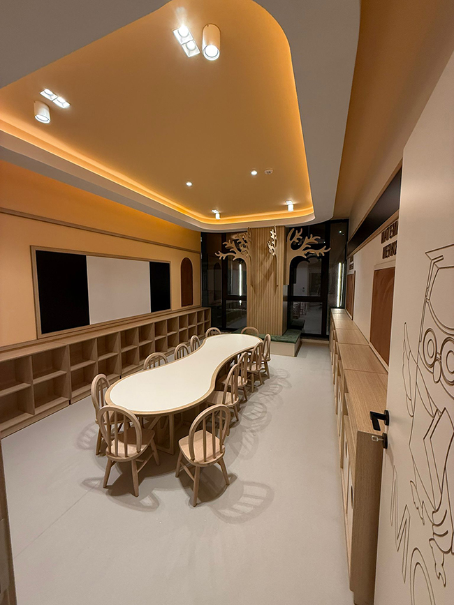 Tasarımda sadece görselliğe değil, işlevselliğe de odaklanıyoruz. Yani bir alanın güzel görünmesi kadar, aktif ve doğru şekilde kullanılabilmesi de bizim için çok önemli. Aynı zamanda tasarımlarımızda çocukların dokunsal, görsel ve işitsel duyularına hitap eden detaylara yer veriyoruz. Böylece sınıflar sadece bir eğitim alanı değil, çok yönlü bir