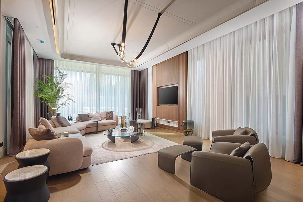 Sosyal donatı zenginliğiyle de dikkat çeken projede, modern yaşamın gereksinimlerini karşılayan spor odası, sinema odası ve tam donanımlı SPA alanı bulunuyor. SPA bölümünde masaj odası, buhar odası, sauna, jakuzi, şömine ve özel Türk hamamı yer alıyor. Bu alanlar, sadece dinlenme mekânı değil, evin içinde bir “wellness kültürü” yaratarak kullanıcıların günlük ritüellerine değer katıyor.