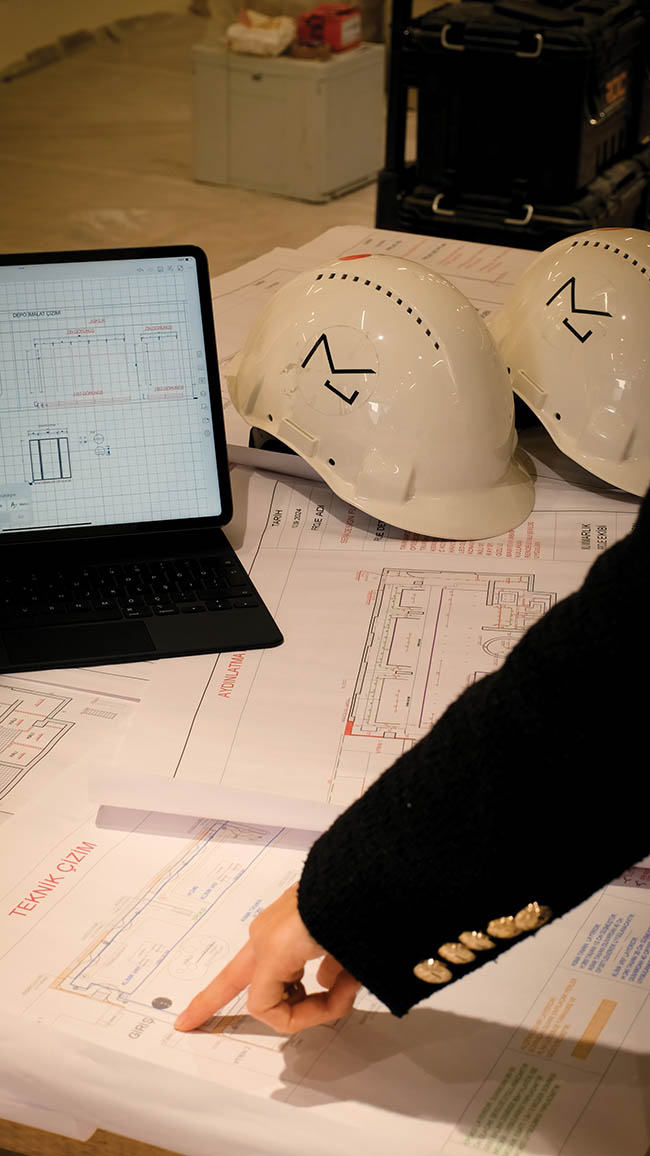 Mekânı ekibimle birlikte gezer, ışık, görüş açıları, malzeme potansiyeli gibi fiziksel öğeleri inceleriz. Bu iki adım sonrası, elde ettiğimiz verilerle kavramsal eskizler hazırlamaya başlarız. Eskiz sürecinde her zaman şunu göz önünde tutarız: Tasarımın her adımı, kullanıcının ruhuna ve deneyimine dokunmalıdır. Bu iki aşamadan sonra elde ettiğimiz verilerle kavramsal eskizler hazırlamaya başlarız. Eskiz sürecinde her zaman önem verdiğim şey, tasarımın her adımının kullanıcının ruhuna ve deneyimine dokunması gerektiğidir. Kavramsal tasarım onaylandıktan sonra detaylara inip plan, kesit ve görselleştirmeler hazırlıyor, malzeme seçimlerini yapıyor ve aydınlatma ile donatı çözümlerini belirliyoruz; bu aşamada geri bildirimleri çok önemser, sık sık iletişimde kalır, istek ve konforunu titizlikle göz önünde tutarız. Hazırladığımız projeyi sunduğumuzda tasarımın her yönünü açıklar, gerekirse birden çok revizyona giderek proje ekibi ile müşteri beklentisi arasında denge kurarız ve nihai tasarıma son şeklini veririz. Proje onaylandıktan sonra uygulama ve inşaat sürecine geçeriz; bu aşamada mimari danışmanlık ve proje yönetimi hizmetiyle tasarımın tam olarak hayata geçmesini sağlarız.