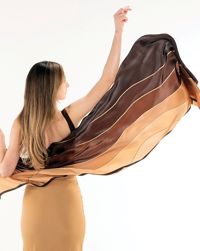 Kalite ve dokunsal deneyim benim için en önemli iki kriter. İpek çok karakterli bir kumaş. Doğru dokuma, doğru ağırlık ve doğru baskı tekniği seçilmediğinde bütün etki kaybolabilir. Bu yüzden malzeme seçiminde oldukça titiz davranıyoruz. Kumaşın akışı, ışığı nasıl yansıttığı ve tenle teması bizim için belirleyici unsurlar. Ayrıca tasarım kadar ürünün uzun ömürlü olması da büyük önem taşıyor. Gerçek lüks ise çoğu zaman tam olarak bu detaylarda ortaya çıkıyor.
