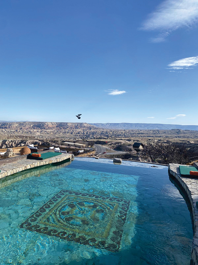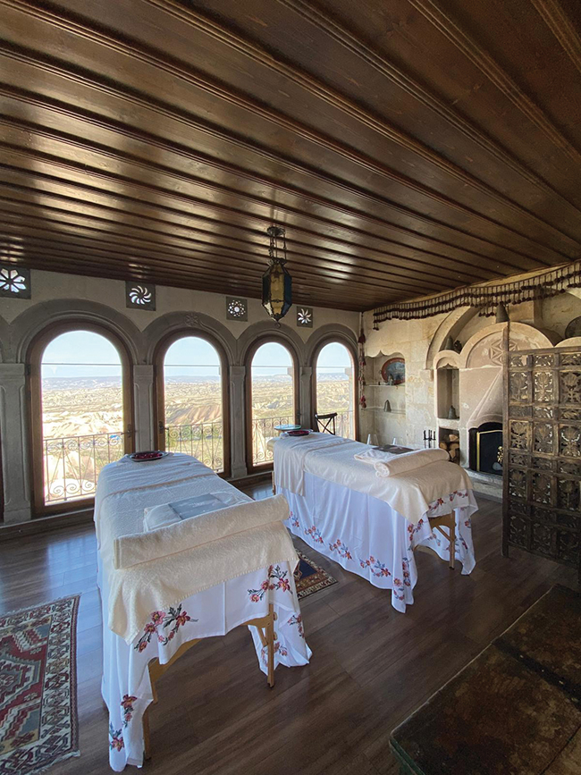 Benim otelim bu kez Museum Otel’di. Michelin yıldızlı restoranı, mağara odaları, muhteşem kahvaltısı, sevgiyle yapılan servisi ve camdan oluşan, vadi manzaralı masaj odası ile benim en sevdiğim otellerdendir. Yabancı misafirler çoğunluktaydı zaten ve otel tam kapasite doluydu…