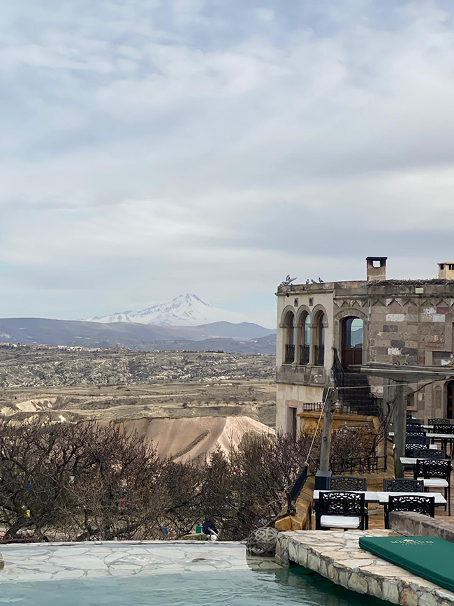 Esasen sayısını hatırlamadığım kadar çok gittiğim Kapadokya’yı karlı manzarada da görmek istemiş ve almıştım biletimi. Amaç buydu: Bembeyaz bir Kapadokya, uçuş varsa beyaz peri bacaları arasında balonla dolaşmak, şömine ve doyamadığım manzaralar, kar yağarken açık havada 35 derecelik havuzda yüzmek…