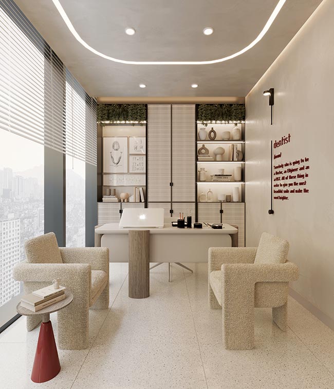 Bu diş kliniğinde, her detay MOVE İç Mimarlık’ın titiz çalışmalarıyla tasarlanmış. Klinik, modern ve davetkâr bir atmosfer sunarken, hijyen ve konfor ön planda tutulmuş. Bekleme alanları, hastaların rahatlığı düşünülerek geniş ve ferah bir şekilde düzenlenmiş, muayene odaları ise en son teknolojiyle donatılmış. Estetik ve fonksiyonelliğin buluştuğu bu klinik, MOVE İç Mimarlık’ın sağlık sektöründe de ne kadar başarılı olduğunu gözler önüne seriyor.