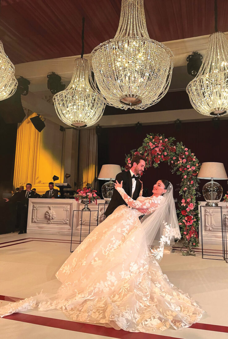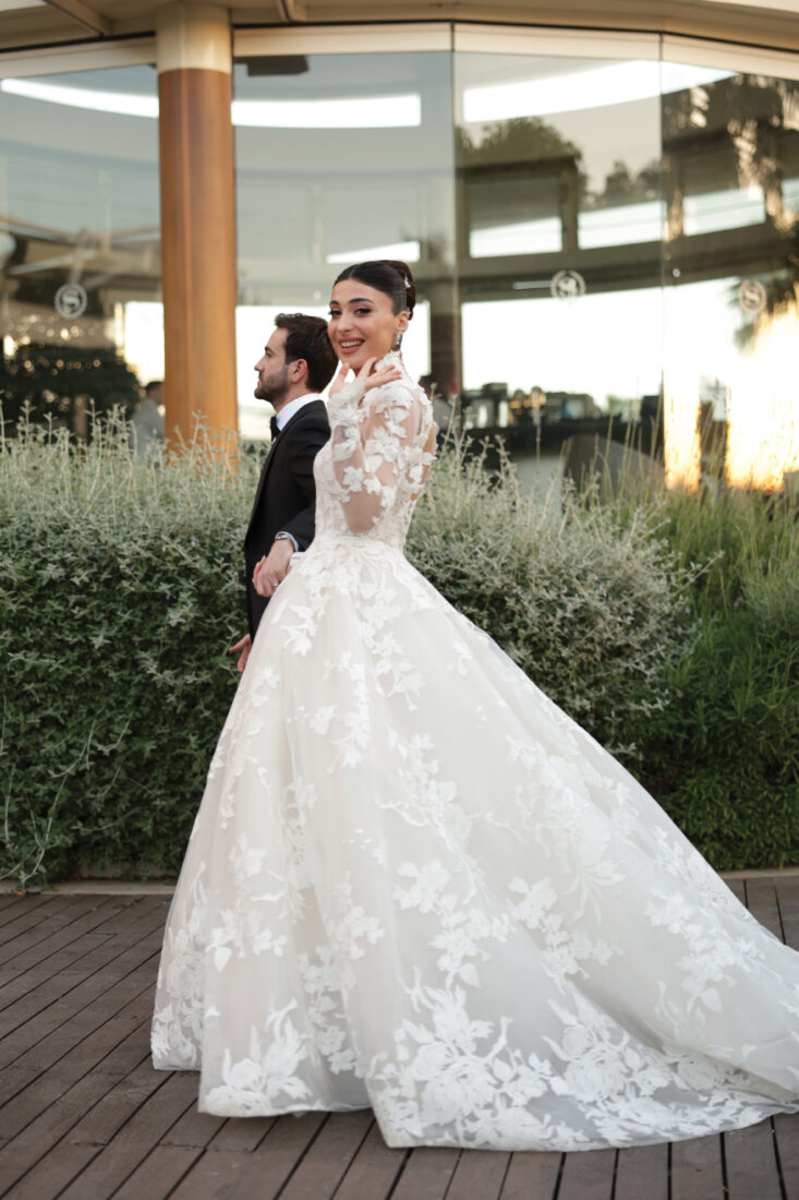 Gelin Yaren Köroğlu, zarafetiyle öne çıkan Monique Lhuillier tasarımı gelinliğiyle göz kamaştırırken, gecenin ilerleyen saatlerinde tercih ettiği Semih Doğruer imzalı after dress ile modern ve şık bir görünüm sergiledi. Gelinin güzelliği Tuğba Gazanfer’in makyajı ve Sinan Çelikbaş’ın saç tasarımıyla tamamlanırken, damat Murat Çiçek ise Milimetric imzalı damatlığıyla şık bir duruş sergiledi.