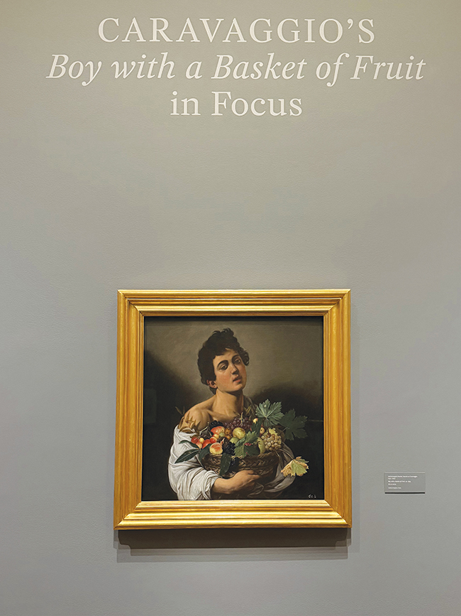 Within this setting, Caravaggio’s Boy with a Basket of Fruit appeared alongside several early works and preparatory material connected to his Roman period. Consisting largely of half-length figures and still life studies, the presentation reflected Caravaggio’s early Roman work, shaped by his earliest patrons in Rome, including Cardinal Scipione Borghese.